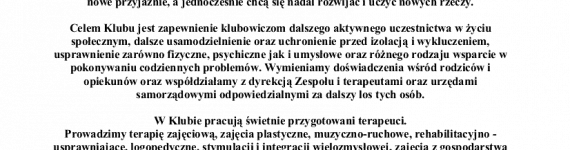 W dniu 28.10.2014 o godz 14:00 ruszył Klub Absolwenta Dobrej Woli. Uczestnikami, Klubowiczami są „dzieci” głębiej zaburzone, które ukończyły edukację specjalna i nie znalazły miejsca w innym systemie placówek opiekuńczych. W inauguracji uczestniczyli rodzice, którzy byli trochę zagubieni faktem, że przez trzy godziny nie muszą zajmować się swoimi dziećmi. Była […]