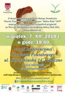 Bardzo serdecznie zapraszamy na kolejny Wieczór Mikołajkowo-Gwiazdkowy Dobrej Woli. Z uwagi na odpowiednie przygotowanie się organizatorów, bardzo prosimy aby do wtorku 4 XII 2018 przekazać informację na adres: jzal@poczta.onet.pl , o liczbie osób niepełnosprawnych, które wezmą udział w wydarzeniu. Prosimy także tradycyjnie o domowe ciasta na wspólny świąteczny stół.